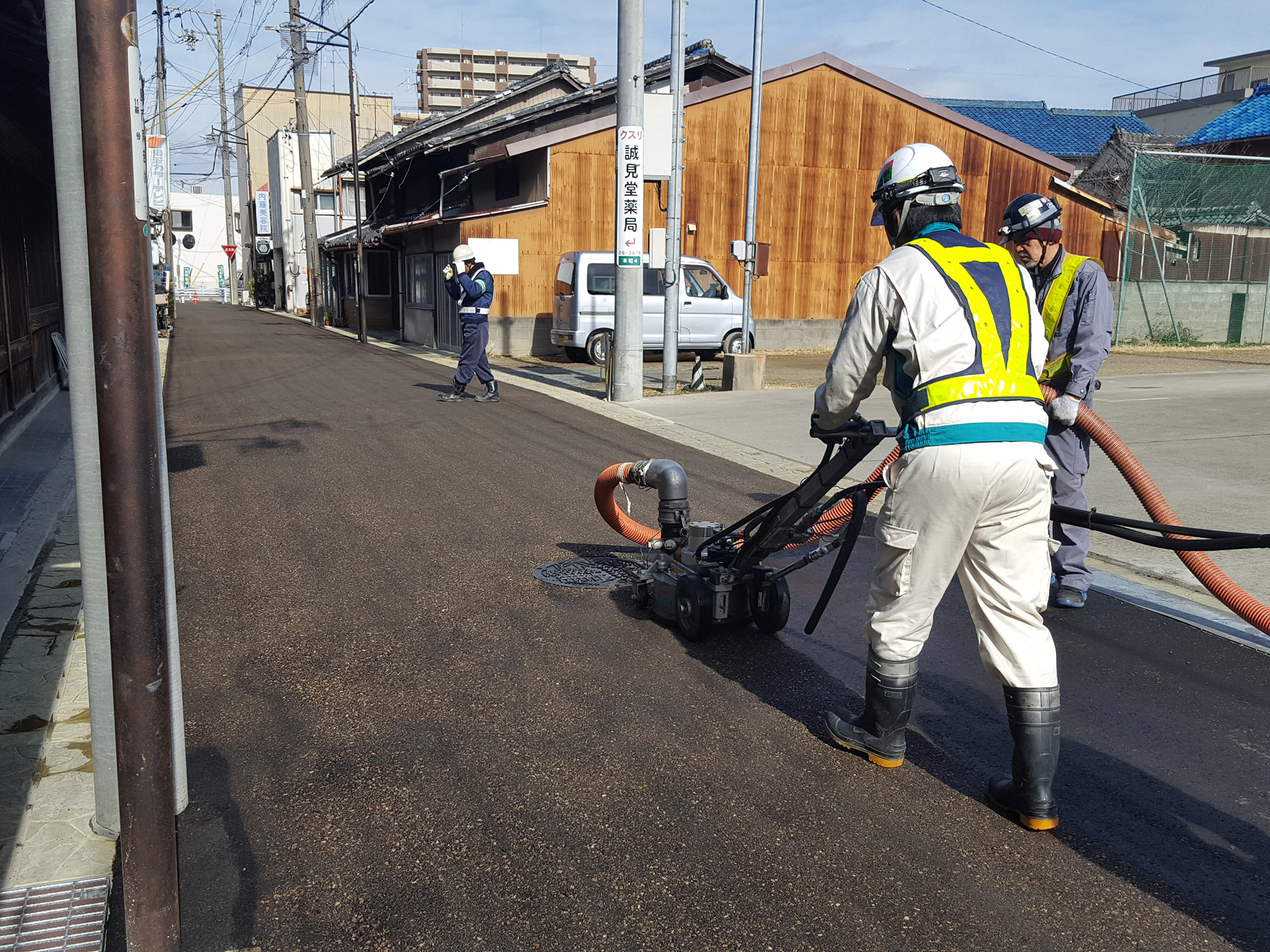 舗装の洗い出し