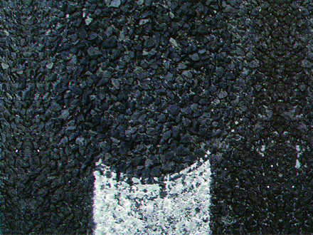 鉄板によるマスキングを行うことで、 ラインの一部のみ消去することができます。梅雨時の交差点改良では、 晴天時に完成ラインを設置後、 雨天時に完成ラインをマスキングし不要部の消去を行えば、 エ期延長の心配はありません。